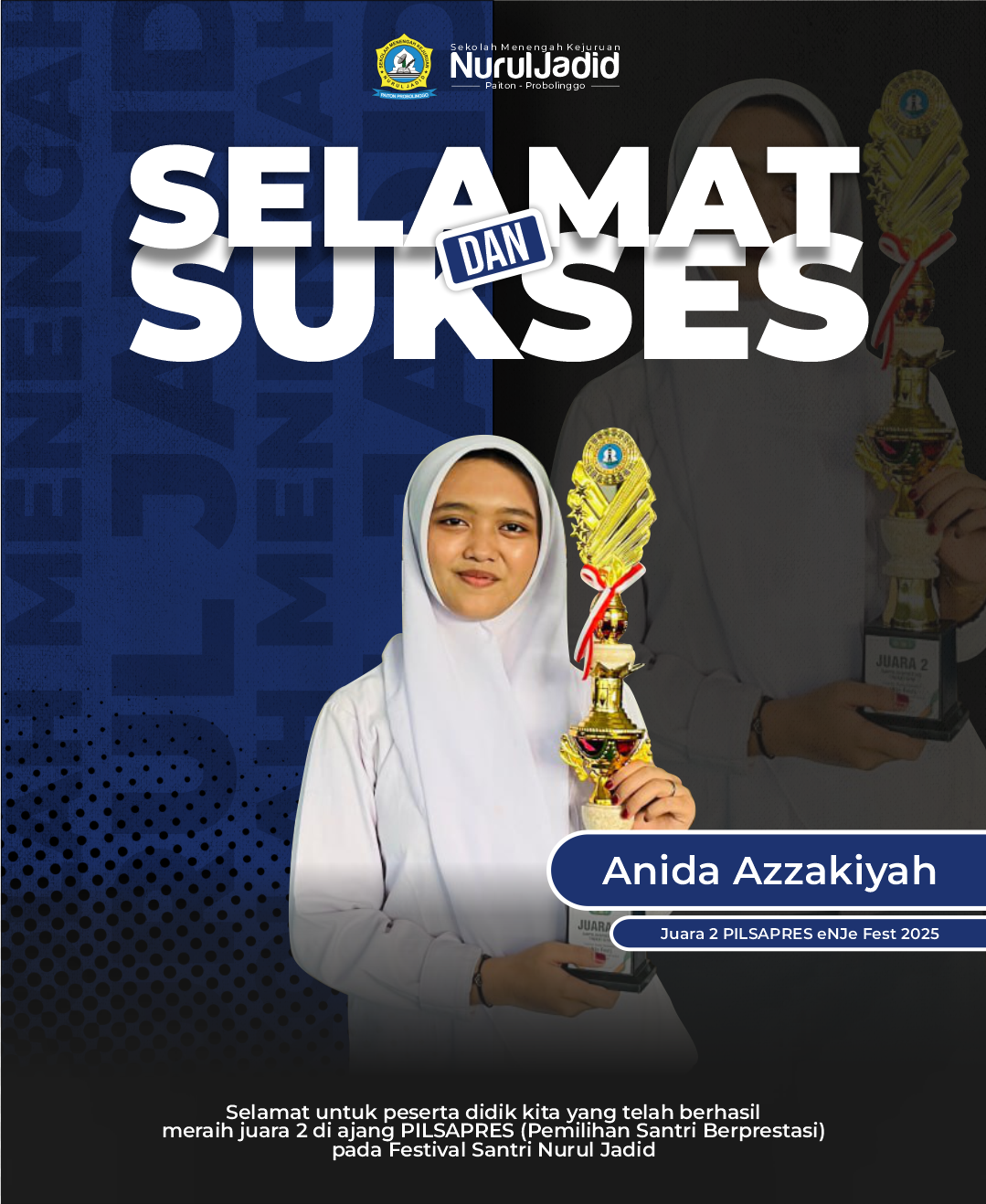 Rabu, 30 Desember 2025, SMK Nurul Jadid Paiton mencatatkan prestasi membanggakan melalui salah satu siswinya, Anida Azzakiyyah, yang berhasil meraih Juara 2 Pemilihan Santri Berprestasi (Pilsapres) da...